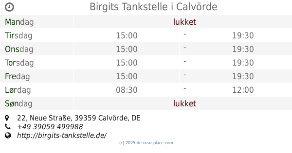 | Søndag | lukket | |||||