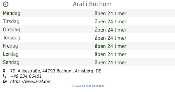 | Mandag | åben 24 timer | |||||