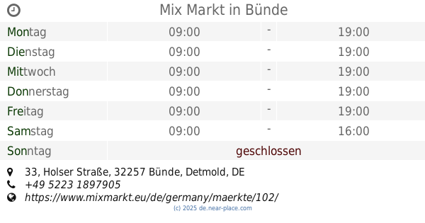 | Sonntag | geschlossen | |||||